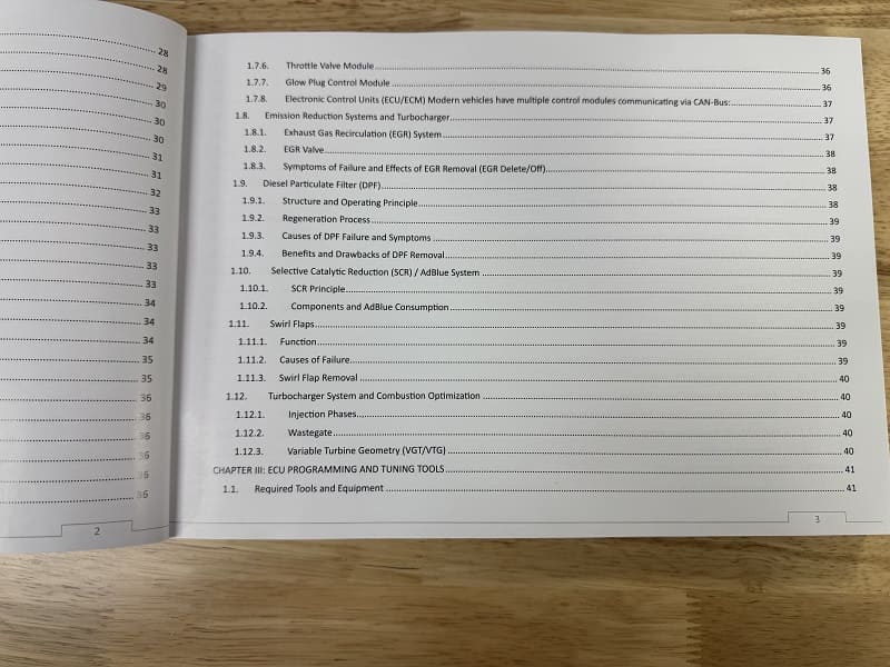 - Expanded Tuning Scope: Vol.2 adds detailed coverage of turbo control, rail pressure, injection timing, torque monitoring, and emissions systems (EGR, DPF, SCR/AdBlue).